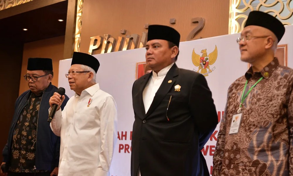 Hadir mendampingi Wapres dalam keterangan pers ini, Pj. Gubernur Sulawesi Tenggara Andhap Budhi Revianto, Plt. Direktur Eksekutif Komite Nasional Ekonomi dan Keuangan Syariah (KNEKS) Taufik Hidayat, serta Staf Khusus Wapres Bidang Komunikasi dan Informasi Masduki Baidlowi. (RR/RJP, rls)