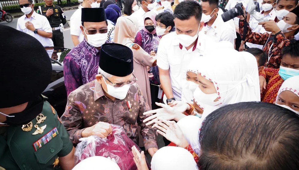 Wapres dan Ibu Hj. Wury Ma’ruf Amin nampak tersenyum mendengar ucapan para siswa.