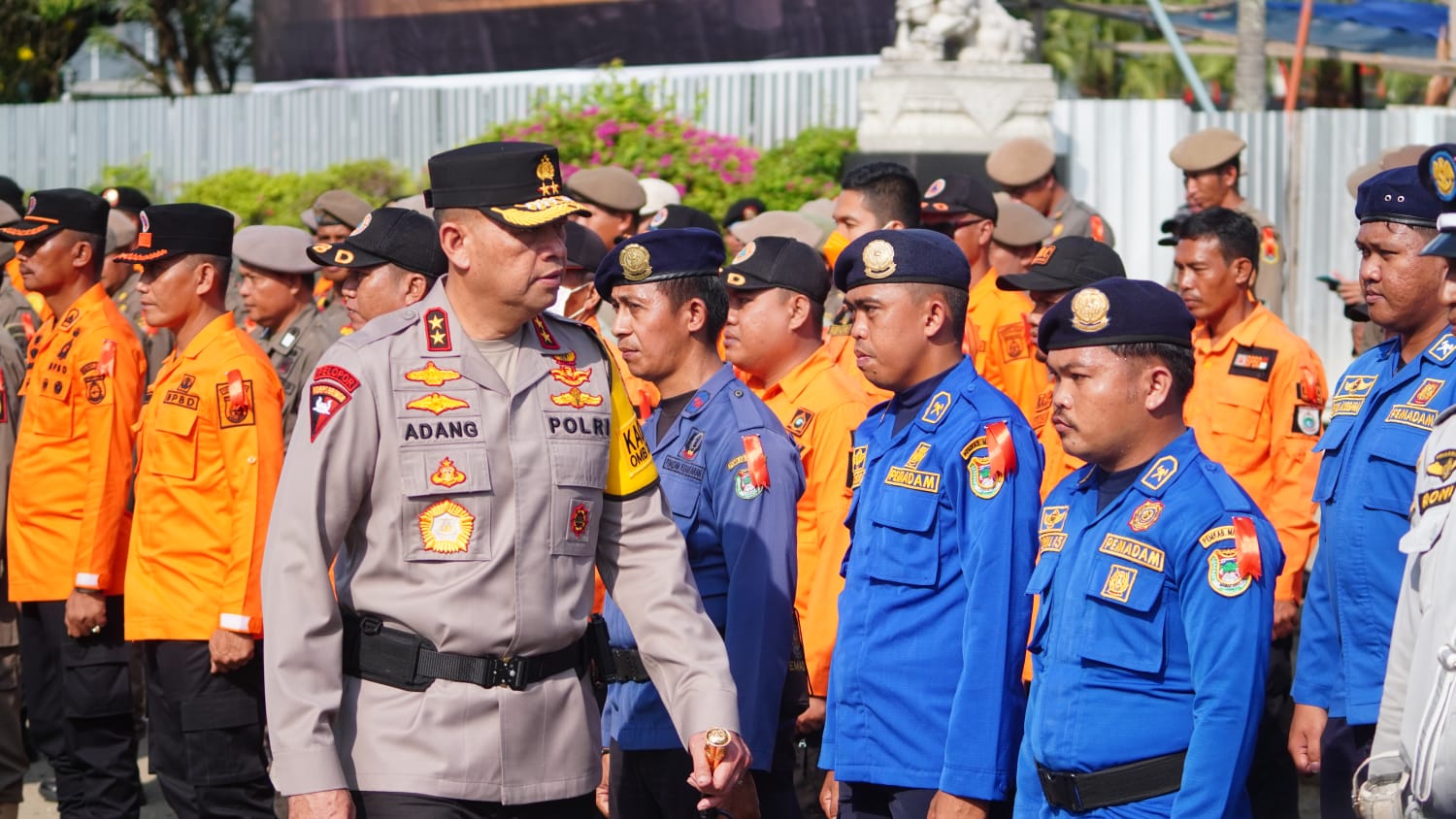 Di depan hotel d’Maleo terlihat ribuan pasukan gabungan dari TNI-POLRI, Basarnas, Satpol PP, Dishub, Senkom, KPU dan Bawaslu mengikuti apel gelar pasukan operasi Mantap Brata 2023-2024 sebagai bukti kesiapan dan keterpaduan bersama mewujudkan pesta demokrasi yang aman dan damai, Selasa (17/10/23).