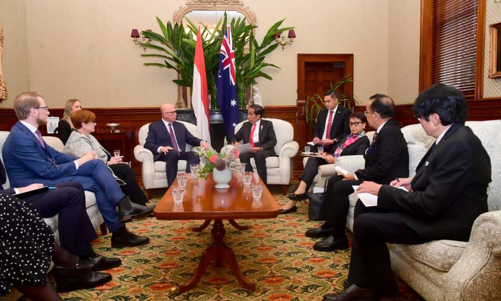 Turut mendampingi Presiden dalam pertemuan adalah Menteri Luar Negeri Retno Marsudi, Menteri Sekretaris Negara Pratikno, dan Duta Besar RI untuk Australia Siswo Pramono.