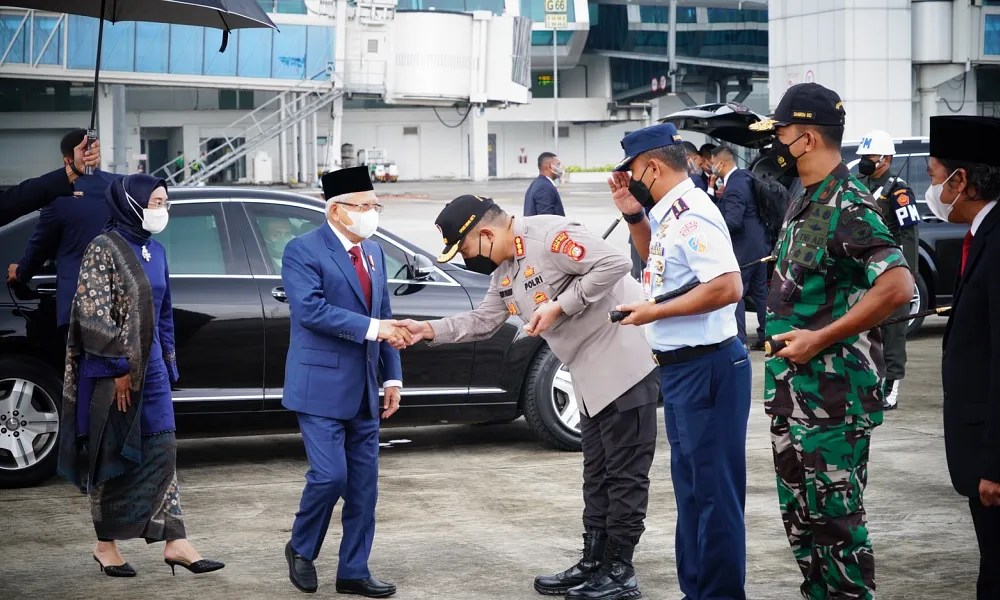 Selain Ibu Hj. Wury Ma’ruf Amin, mendampingi Wapres dalam kunker kali ini, Kepala Sekretariat Wakil Presiden Ahmad Erani Yustika, Deputi Bidang Dukungan Kebijakan Ekonomi dan Peningkatan Daya Saing Guntur Iman Nefianto, Deputi Bidang Administrasi Sapto Harjono Wahjoe Sedjati, Direktur Jenderal Protokol dan Konsuler/Kepala Protokol Negara Andy Rachmianto, Staf Khusus Wapres Masykuri Abdillah, Masduki Baidlowi, dan Zumrotul Mukaffa,Tim Ahli Wakil Presiden Farhat Brachma, serta Plt. Direktur Eksekutif Komite Nasional Ekonomi dan Keuangan Syariah Taufik Hidayat (SK-BPMI, Setwapres)