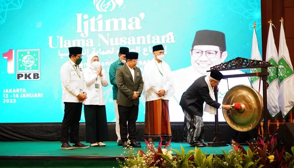 Sebagai informasi, usai memberikan pidatonya, Wapres didampingi oleh Ketua Umum DPP PKB Muhaimin Iskandar, Menteri Ketenagakerjaan RI Ida Fauziyah, Menteri Desa, Pembangunan Daerah Tertinggal, dan Transmigrasi A. Halim Iskandar, Wakil ketua MPR RI Jazilul Fawaid, dan Ketua Panitia Ijtima’ Ulama Saifullah Maksum melakukan pemukulan gong sebagai tanda peresmian pembukaan Ijtima’ Ulama Nusantara 2023.