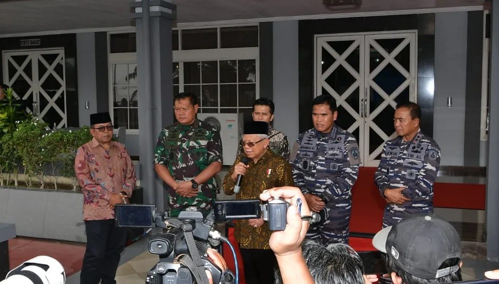 Hadir mendampingi Wapres pada keterangan pers ini, Panglima TNI Laksamana Yudo Margono, Kepala Staf Angkatan Laut Laksamana Muhammad Ali, Gubernur AAL Laksamana Muda Denih Hendrata, serta Wakil Gubernur Jawa Timur Emil Elestianto Dardak. (NN/AS, rls)