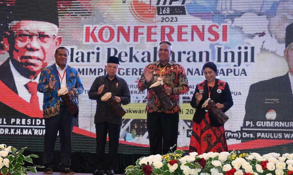 Manokwari, WACANA.ID – Mengawali agenda pertamanya di Kabupaten Manokwari, Wakil Presiden (Wapres) K. H. Ma’ruf Amin menghadiri Peresmian Pembukaan Konferensi II Hari Pekabaran Injil (HPI) ke-168 Persekutuan Gereja-Gereja Papua (PGGP) se-Tanah Papua di Meridien Ballroom Hotel Aston Niu Manokwari, Jl. Drs. Esau Sesa, Kabupaten Manokwari, Papua Barat, Sabtu pagi (15/07/2023).