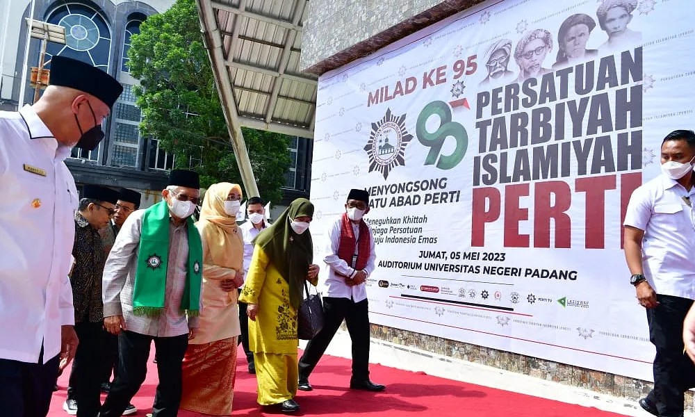 “Zaman boleh berubah, perpolitikan boleh berubah, ilmu pengetahuan boleh berubah, tapi khittah tidak boleh berubah,” tegas Wakil Presiden (Wapres) K.H. Ma’ruf Amin saat menghadiri acara Peringatan Milad Ke-95 PERTI di Universitas Negeri Padang, Jl. Prof. Dr. Hamka, Air Tawar, Kec. Padang Utara, Kota Padang, Jumat (05/05/2023).