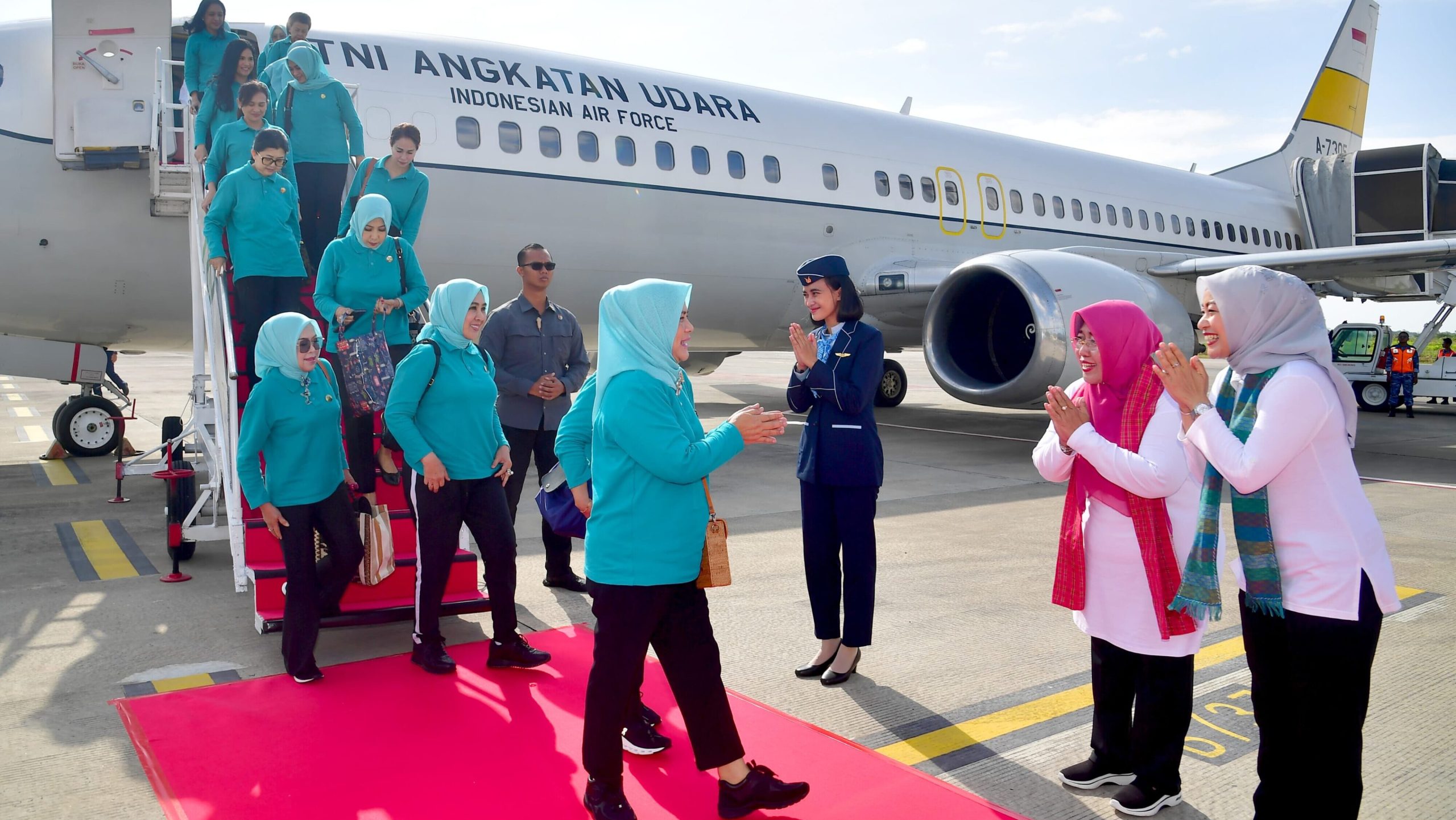 Ibu Iriana Joko Widodo bersama sejumlah anggota Organisasi Aksi Solidaritas Kabinet Indonesia Maju (OASE KIM) melakukan kunjungan kerja ke Provinsi Nusa Tenggara Barat (NTB) pada Kamis, 30 Mei 2024. Tiba di Bandar Udara Internasional Lombok Zainuddin Abdul Madjid dengan menggunakan pesawat Boeing TNI AU 737-400 sekira pukul 09.10 WITA, rombongan akan langsung memulai kegiatan pertama di Kota Mataram.