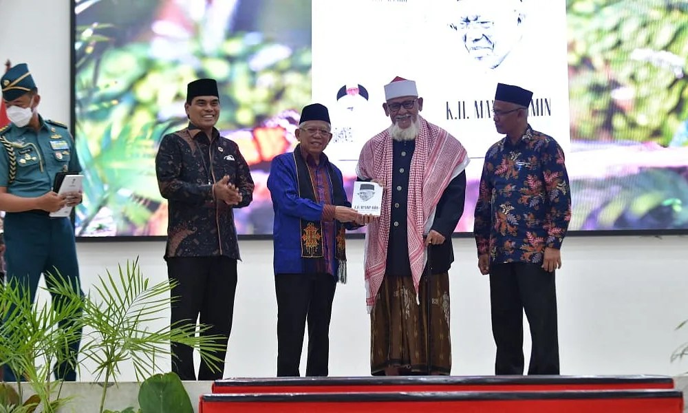 Turut mendampingi Wapres saat memberikan keterangan pers, Rektor UIN Ar-Raniry Banda Aceh Mujiburrahman, Plt. Direktur Eksekutif KNEKS Taufik Hidayat, dan Staf Khusus Wapres Masduki Baidlowi. (DAS/RJP – rls)