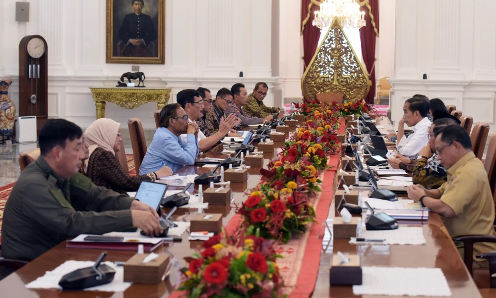 Presiden RI Joko Widodo (Jokowi) memimpin rapat terbatas (ratas) yang membahas kebijakan golden visa bagi warga negara asing, Senin (29/05/2023), di Istana Merdeka, Jakarta. Kebijakan tersebut diyakini dapat menarik lebih banyak talenta berkualitas dari berbagai jenis bidang.