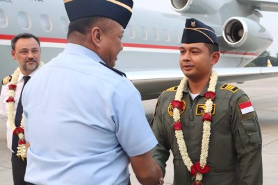 Kementerian Pertahanan menerima kedatangan Pesawat Falcon 8X dengan nomor registrasi A-0801 dan langsung diserahterimakan kepada Kepala Staf Angkatan Udara (Kasau) di Lanud Halim Perdanakusuma, Rabu (8/11).