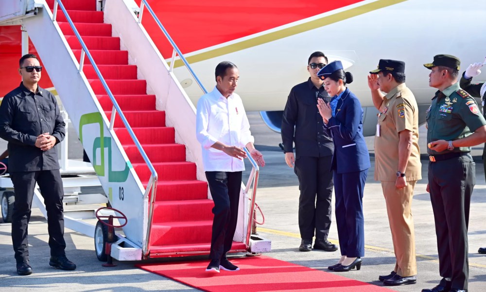 Presiden RI Joko Widodo (Jokowi) tiba di Pangkalan Utama TNI AD (Lanumad) Ahmad Yani, Kota Semarang untuk melakukan kunjungan kerja di Provinsi Jawa Tengah pada Rabu (13/12/2023). Dengan menggunakan pesawat kepresidenan Indonesia-1, Presiden tiba di Semarang sekitar pukul 07.35 WIB. Di Lanumad Ahmad Yani, Presiden Jokowi tampak disambut oleh Pj. Gubernur Jawa Tengah Nana Sudjana.