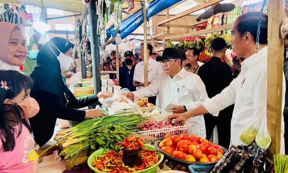 “Ini berapa?,” tanya Presiden kepada seorang pedagang bawang merah.