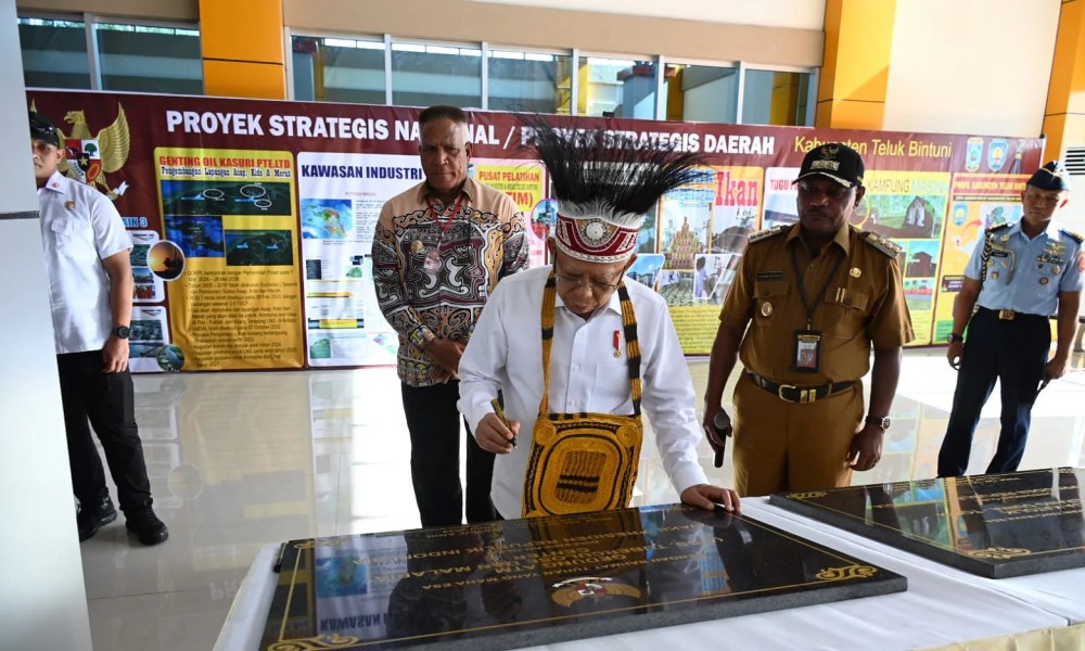 Teluk Bintuni, WACANA.ID – Usai menyelesaikan serangkaian agenda kunjungan kerja di Kabupaten Fakfak, Papua Barat, Wakil Presiden (Wapres) K.H. Ma’ruf Amin didampingi Ibu Hj. Wury Ma’ruf Amin beserta rombongan bertolak ke Teluk Bintuni, untuk meresmikan sejumlah fasilitas umum, groundbreaking kawasan industri, serta agenda strategis lainnya, Jumat (14/07/2023).