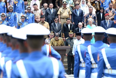 Magelang – Presiden RI Joko Widodo didampingi Menteri Pertahanan RI Prabowo Subianto meresmikan Graha Utama Akademi Militer di Kesatrian Akademi Militer, Magelang, Jawa Tengah, Senin (29/1).