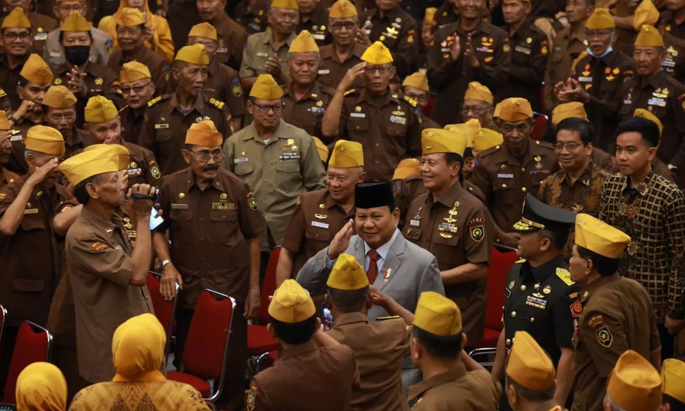 Solo – Menteri Pertahanan Prabowo Subianto mewakili Presiden RI Joko Widodo menghadiri acara Peringatan Hari Veteran Nasional (Harvetnas) yang digelar di Auditorium GPH Haryo Mataram Universitas Sebelas Maret (UNS) Solo, Kamis, (10/8).