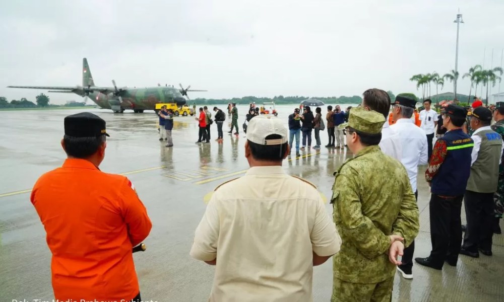 “Ada makanan, sepatu boots, baju hujan, selimut, dan kita akan terus kirim,” ujar Menhan Prabowo pada konferensi pers.