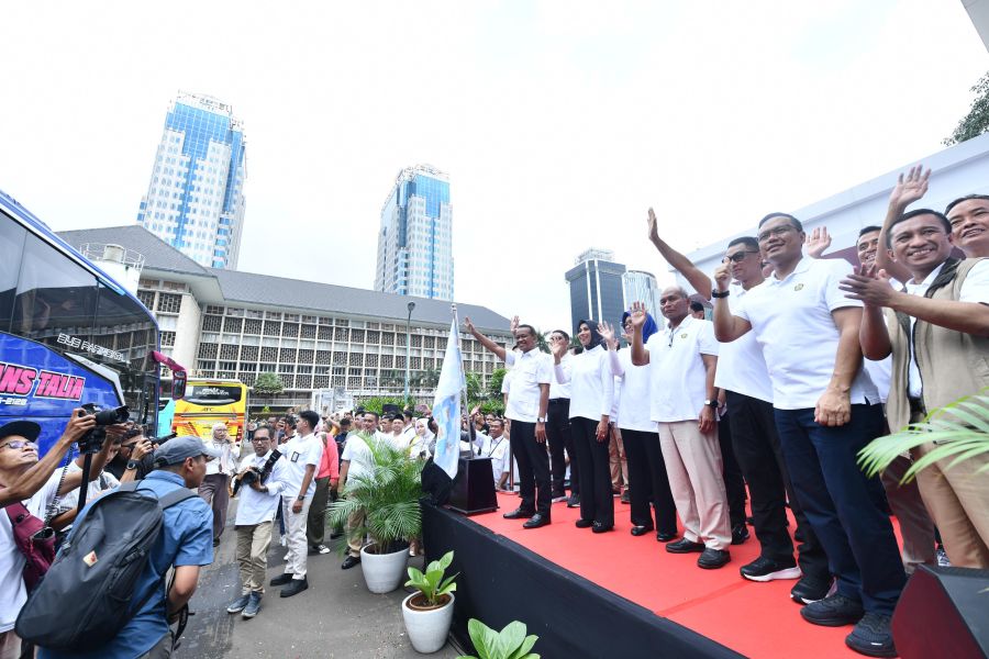 Jakarta, 27 Maret 2025 – Direktur Utama PT Pertamina (Persero) Simon Aloysius Mantiri bersama Menteri Energi dan Sumber Daya Mineral (ESDM) Bahlil Lahadalia beserta Komisaris Utama Pertamina Mochammad Iriawan secara resmi melepas keberangkatan 1.407 pemudik dari lapangan kantor Kementerian ESDM pada Kamis pagi (27/3).