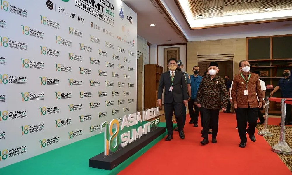 “Apalagi pascahantaman aneka krisis yang saling berkelindan seperti sekarang. Media harus mampu mengoptimalisasikan peranannya sebagai penyalur sekaligus penyaji gagasan yang segar, yang dapat menjadi solusi sekaligus membangun paradigma kolaborasi yang saling menguntungkan,” tutur Wakil Presiden (Wapres) K.H. Ma’ruf Amin pada acara Pembukaan Asia Media Summit (AMS) ke-18 Tahun 2023 di Grand Hyatt Bali, Kawasan Wisata Nusa Dua BTDC, Jl. Nusa Dua, Benoa, Kabupaten Badung, Bali, Selasa (23/05/2023).