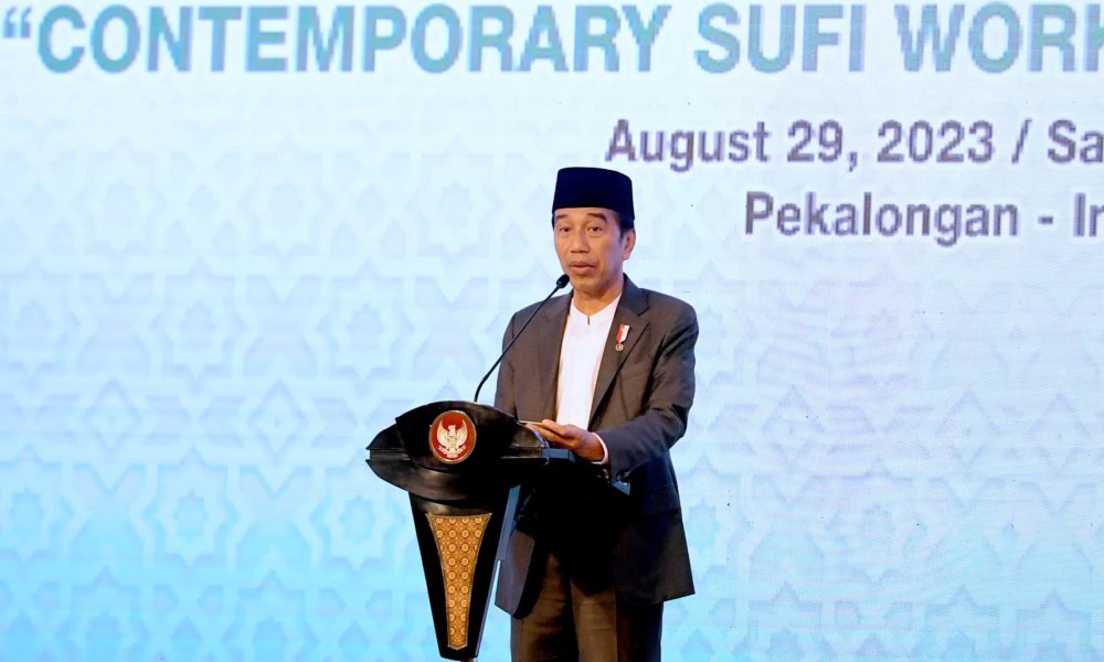 Presiden Joko Widodo meresmikan pembukaan Muktamar Sufi Internasional Tahun 2023 yang diselenggarakan di Sahid International Convention Center, Kota Pekalongan, Provinsi Jawa Tengah pada Selasa, 29 Agustus 2023. Dalam sambutannya, Presiden menyampaikan apresiasi atas pelaksanaan muktamar yang diyakini mampu meningkatkan kepercayaan dunia kepada Indonesia serta makin dikenal sebagai contoh negara Islam moderat.