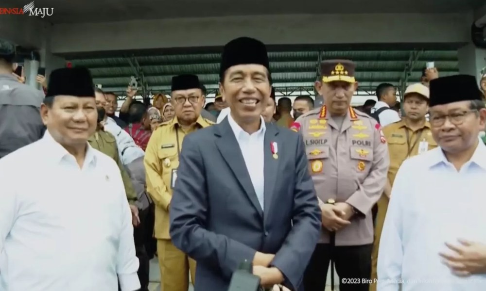 Dalam peninjauan ini, Presiden juga menyerahkan bantuan kepada para pedagang pasar. Turut mendampingi Presiden, antara lain, Sekretaris Kabinet Pramono Anung, Menteri Pertahanan Prabowo Subianto, dan Kepala Kapolri Jenderal Listyo Sigit Prabowo.