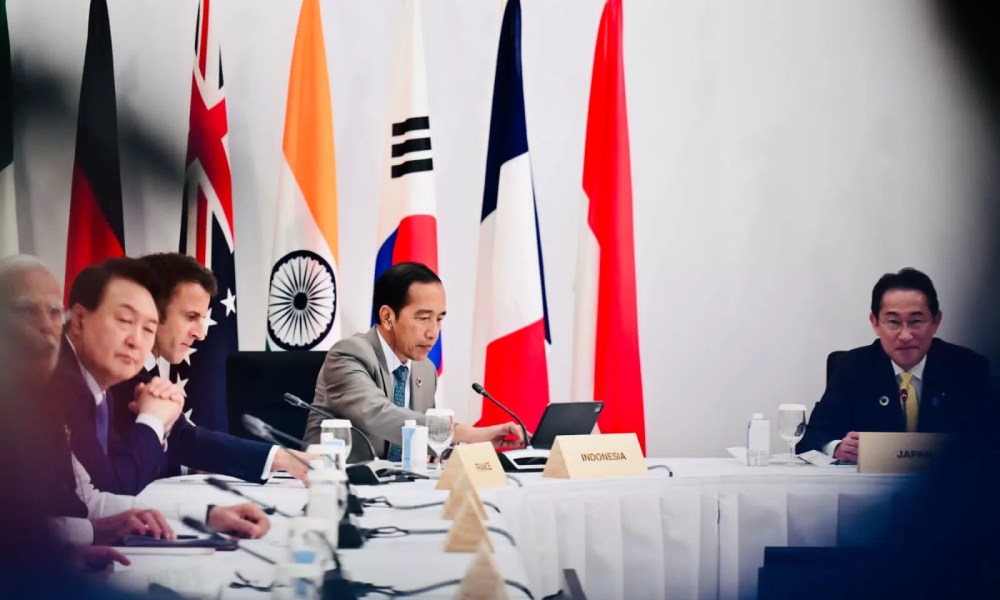 Presiden RI Joko Widodo (Jokowi) mendorong kesetaraan, kolaborasi, dan inklusivitas dalam kerja sama global saat menghadiri Sesi Kerja Mitra G7 di Grand Prince Hotel Hiroshima, Jepang, pada Sabtu (20/05/2023). Dalam sesi yang membahas berbagai persoalan global tersebut, Presiden Jokowi membawa pesan dari global south.