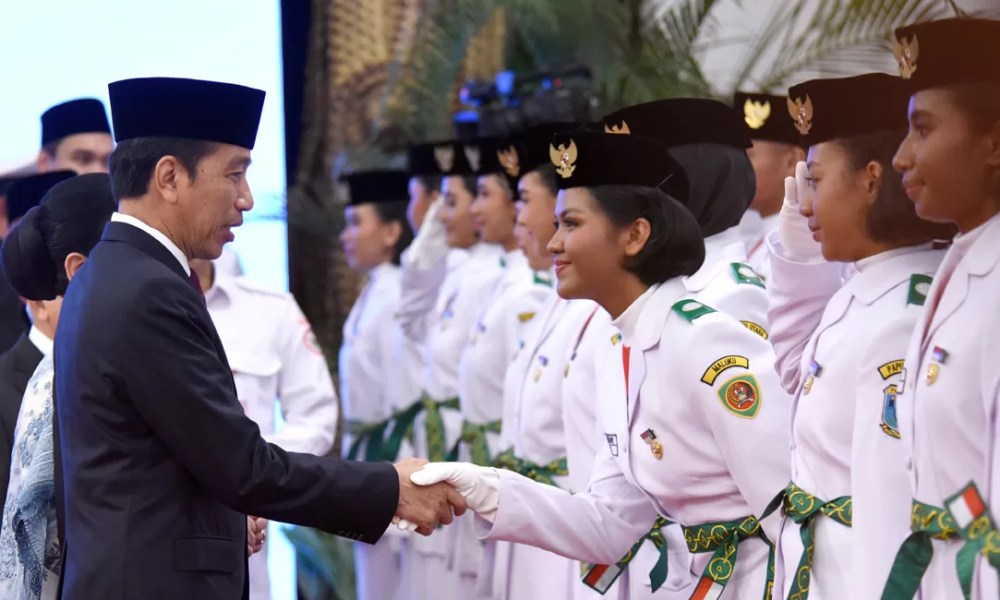 Presiden RI Joko Widodo (Jokowi) mengukuhkan sebanyak 76 putra-putri Indonesia dari 38 provinsi menjadi pasukan pengibar bendera pusaka (paskibraka) yang akan bertugas pada HUT ke-78 RI tanggal 17 Agustus 2023 di Halaman Istana Merdeka, Jakarta. Upacara pengukuhan digelar di Istana Negara, Jakarta, Selasa (15/08/2023) sore.
