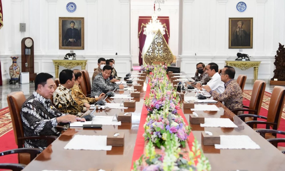 Turut mendampingi Presiden dalam pertemuan tersebut yakni Menteri Koordinator Bidang Politik, Hukum, dan Keamanan Mahfud Md. serta Menteri Sekretaris Negara Pratikno.