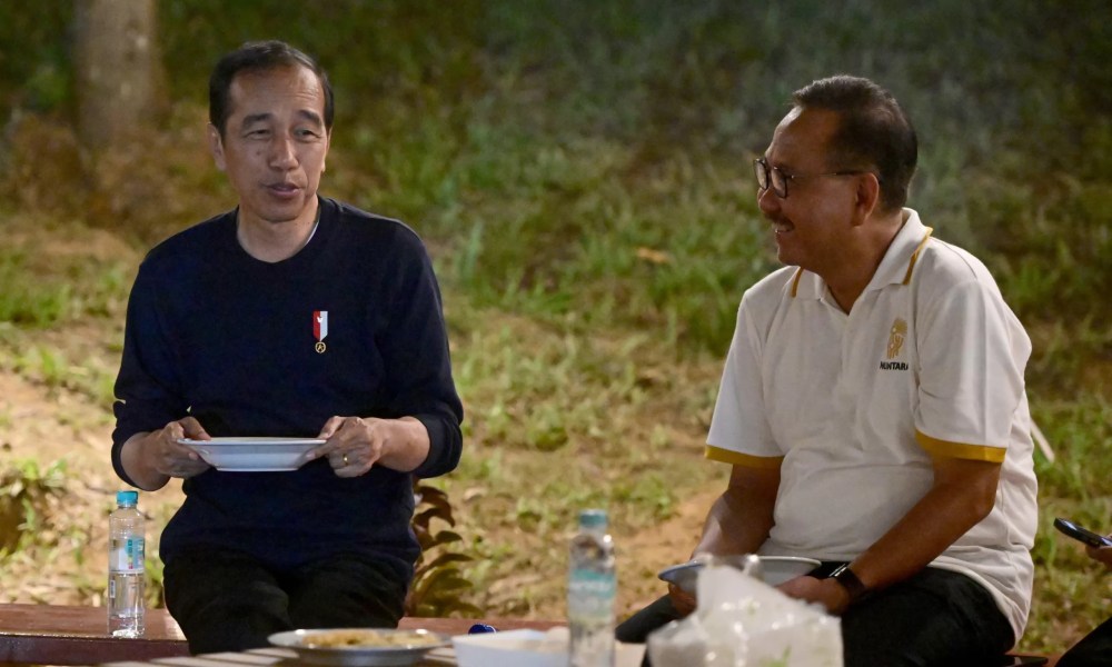 Pada malam hari, tampak Presiden Jokowi yang duduk di antara Kepala Otorita IKN Bambang Susantono dan Kurator Pembangunan IKN Ridwan Kamil, menikmati malam dengan menyantap nasi goreng jawa.