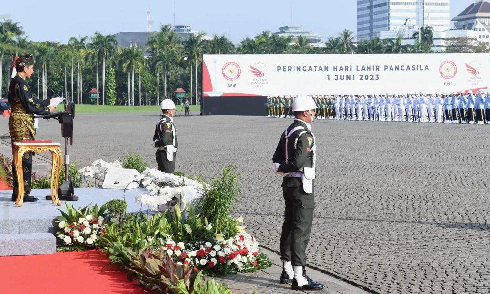Hal tersebut disampaikan oleh Presiden Joko Widodo dalam amanatnya saat memimpin Upacara Peringatan Hari Lahir Pancasila yang digelar di Sisi Selatan Monumen Nasional (Monas), Jakarta, pada Kamis, 1 Juni 2023.