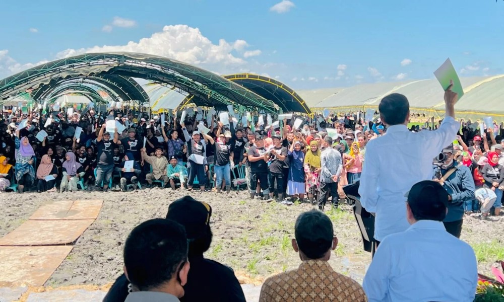 “Supaya Bapak, Ibu semuanya tahu bahwa kebutuhan pupuk di Indonesia ini harusnya 13 juta ton seluruh Tanah Air Indonesia, 13 juta ton. Di Indonesia baru bisa berproduksi 3,5 juta ton,” jelasnya dalam acara penyerahan sertifikat tanah untuk rakyat serta Surat Keputusan (SK) Perhutanan Sosial dan SK Tanah Objek Reforma Agraria (TORA) di Areal Kesongo, Kabupaten Blora, Provinsi Jawa Tengah, pada Jumat, 10 Maret 2023.