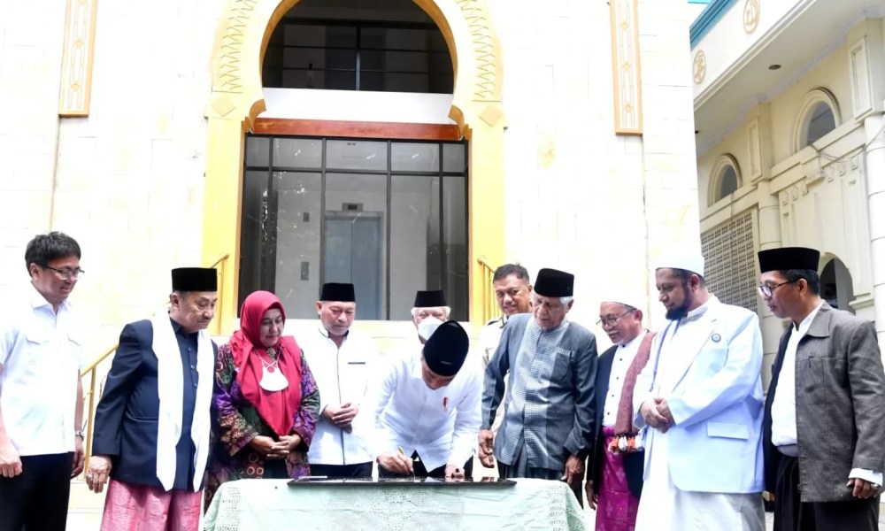 Presiden Jokowi meresmikan penataan kawasan Masjid Ahmad Yani berupa pembangunan menara, di Kelurahan Lawangirung, Kecamatan Wenang, Kota Manado, Sulut, Jumat (20/01/2023). (Foto: BPMI Setpres/Rusman)