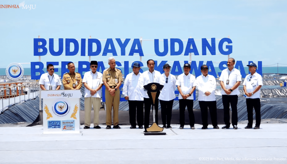 “Dengan mengucap bismillahirrahmanirrahim, pada siang hari ini saya resmikan Tambak Budidaya Udang Berbasis Kawasan di Kabupaten Kebumen, Provinsi Jawa Tengah,” ucap Presiden.