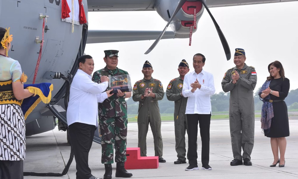 Presiden Joko Widodo menyampaikan. pesawat Super Hercules ini merupakan pesawat yang sangat canggih serta bisa digunakan untuk mengangkut pasukan maupun kargo dengan berat hingga 19,9 ton.