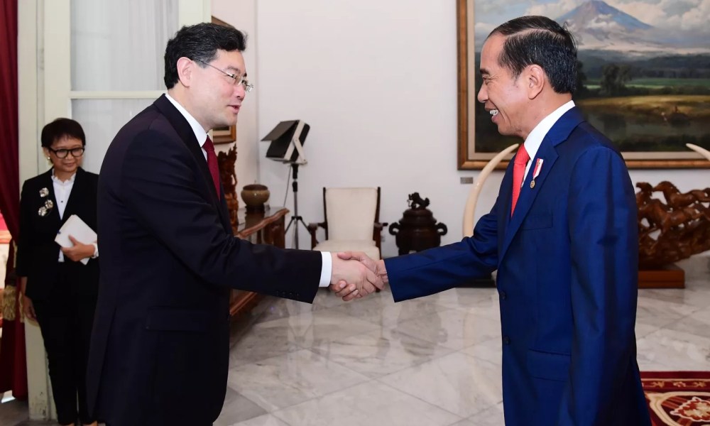 Presiden RI Joko Widodo (Jokowi) menerima kunjungan kehormatan Menteri Luar Negeri (Menlu) Republik Rakyat Tiongkok (RRT) Qin Gang, pada Rabu (22/02/2023), di Istana Merdeka, Jakarta. Menteri Luar Negeri Retno Marsudi yang turut mendampingi Presiden Jokowi dalam pertemuan tersebut mengatakan bahwa kunjungan Menlu Qin Gang merupakan kunjungan resmi pertamanya setelah dilantik pada Desember 2022 lalu.