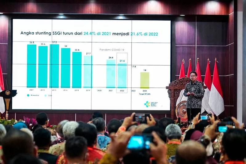 Kementerian Kesehatan mengumumkan hasil Survei Status Gizi Indonesia (SSGI) pada Rapat Kerja Nasional BKKBN, Rabu (25/1) dimana prevalensi stunting di Indonesia turun dari 24,4% di tahun 2021 menjadi 21,6% di 2022.