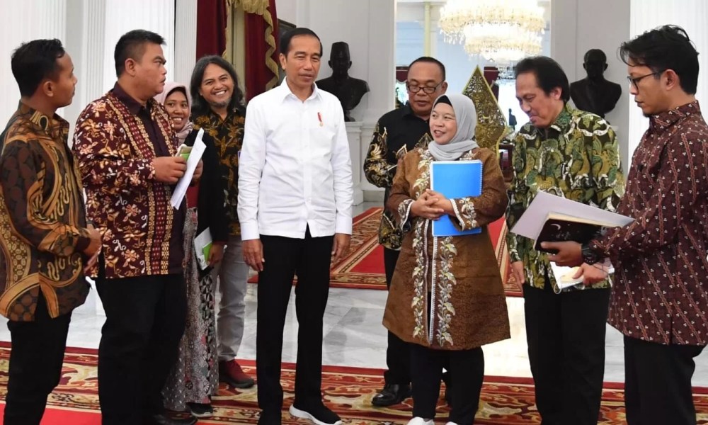 Presiden Joko Widodo menerima sejumlah pelaku perhutanan sosial (PS) di Istana Merdeka, Jakarta, pada Selasa, 31 Januari 2023. Mereka yang hadir antara lain berasal dari Gema Perhutanan Sosial, Asosiasi Pengelola Perhutanan Sosial Indonesia (AP2SI), Perkumpulan Rejo Semut Ireng, Pojok Desa, dan Perkumpulan Arupa.