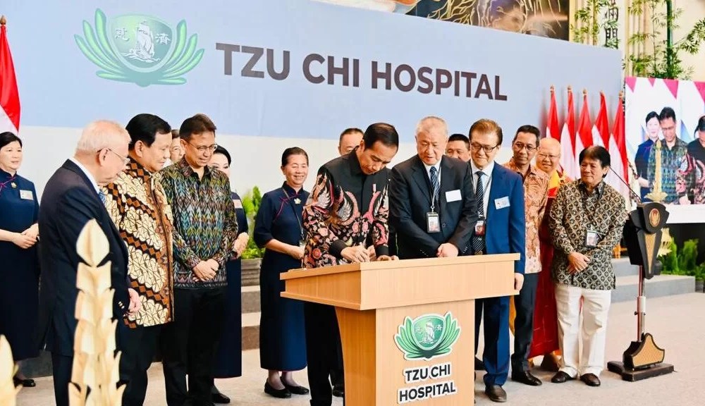 Presiden Joko Widodo meresmikan pembangunan Rumah Sakit (RS) Tzu Chi Hospital yang berlokasi di kawasan Pantai Indah Kapuk, Jakarta, pada Rabu, 14 Juni 2023. Dalam sambutannya, Presiden Jokowi mengapresiasi pembangunan rumah sakit yang dinilainya memiliki peralatan yang modern dan canggih.