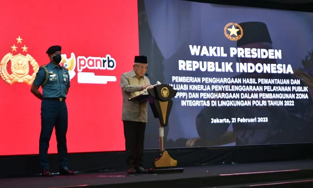 “Kedepankan transparansi, objektivitas dan profesionalisme, atau saya singkat TOP. Jadi, Polri tidak hanya Presisi, tetapi juga TOP,” pinta Wapres saat menghadiri acara Pemberian Penghargaan Hasil Pemantauan dan Evaluasi Kinerja Penyelenggaraan Pelayanan Publik dan Pembangunan Zona Integritas di Lingkungan Kepolisian Negara Republik Indonesia (Polri) Tahun 2022 di Gedung Rupatama Markas Besar (Mabes) Polri, Jl. Trunojoyo No. 3, Kebayoran Baru, Jakarta Selatan, Selasa (21/02/2023).