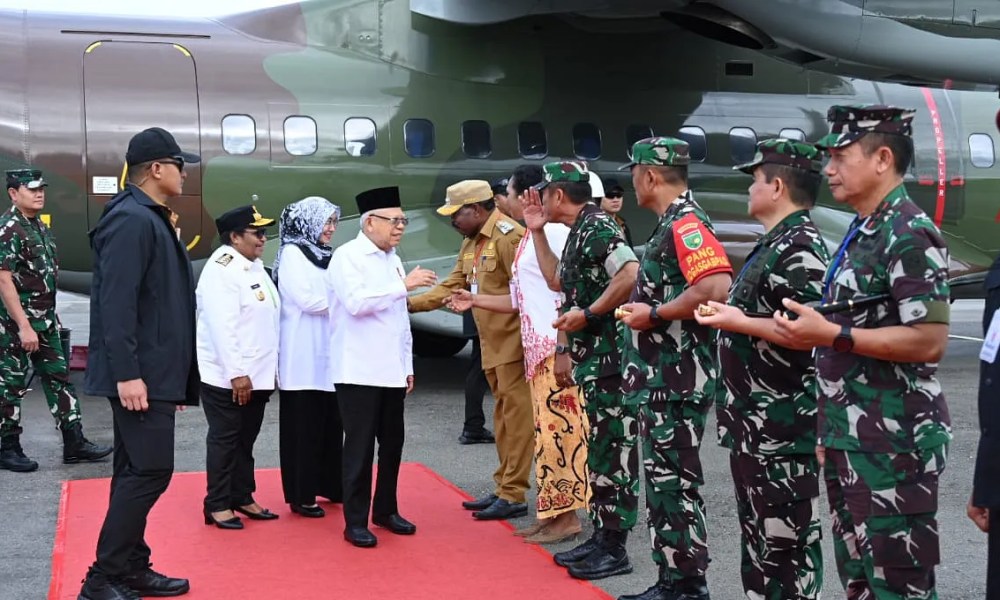 Turut mendampingi Wapres, yaitu Panglima TNI Laksamana Yudo Margono, Wakil Menteri Dalam Negeri John Wempi Wetipo, Wakil Menteri Lingkungan Hidup dan Kehutanan Alue Dohong, Pj. Gubernur Papua Tengah Ribka Haluk, Pangdam XVII/Cenderawasih Mayjen TNI Izak Pangemanan, Kapolda Papua Irjen Pol Mathius D. Fakhiri, Kepala Sekretariat Wapres Ahmad Erani Yustika, Deputi Bidang Dukungan Kebijakan Pemerintahan dan Wawasan Kebangsaan Velix Wanggai, Deputi Bidang Administrasi Sapto Harjono Wahjoe Sedjati, Staf Khusus Wapres Bidang Komunikasi dan Informasi Masduki Baidlowi, Staf Khusus Wapres Bidang Umum Masykuri Abdillah, Staf Khusus Wapres Bidang Politik dan Hubungan Kelembagaan Robikin Emhas, Tim Ahli Wapres Farhat Brachma dan Johan Tedja Surya, Kabinda Papua Mayjen TNI Gustav Agus Irianto, serta Wakil Ketua Badan Amil Zakat Nasional Moh. Mahdum. (DAS/RJP – rls)