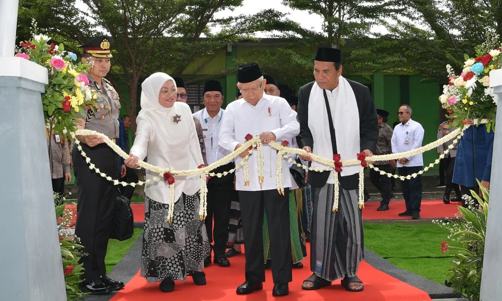 Mendampingi Wapres saat memberikan keterangan pers kali ini, Menteri Ketenagakerjaan Ida Fauziyah, Pj. Gubernur Banten Al Muktabar, dan Staf Khusus Wapres Masduki Baidlowi. (HB/AS- rls)