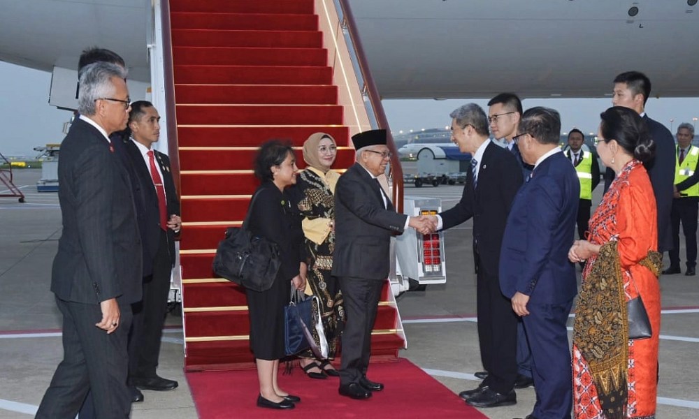 Setelah menempuh penerbangan selama 2 jam 50 menit, Wapres beserta Ibu Hj. Wury Ma’ruf Amin tiba di Bandara International Pudong, Shanghai, dan disambut oleh Deputi Dirjen Urusan Luar Negeri Provinsi Shanghai, Liu Guangyong; Dubes RI di Beijing Djauhari Oratmangun dan Ibu Sih Elsiwi Handayani Oratmangun; Acting Konjen RI untuk Shanghai Ibu Faramela; serta Atase Pertahanan RI di Beijing Brigjen TNI (Mar) Benny Poltak Nadeak dan Ibu Desy Sulastri Tampubolon.
