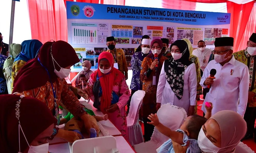 Di tempat ini, Wapres mendapat laporan dari Gubernur Bengkulu bahwa Prevalensi stunting di Provinsi Bengkulu mengalami penurunan sebesar 2,3 poin dari tahun 2021 ke 2022.