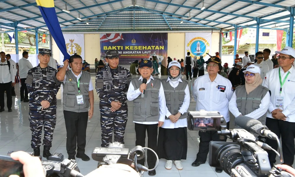 Mendampingi Wapres saat memberikan keterangan pers kali ini, Menteri Lingkungan Hidup dan Kehutanan Siti Nurbaya, Kepala Staf TNI Angkatan Laut Muhammad Ali, Pj. Gubernur Banten Al Muktabar, serta Staf Khusus Wapres Bidang Komunikasi dan Informasi Masduki Baidlowi. (EP/AS-rls)
