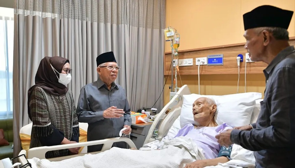 “Mudah-mudahan Allah memberikan kesembuhan kepada kiai sehingga masih bisa memimpin kita semua, umat Islam khususnya dan bangsa Indonesia pada umumnya,” tutur Wapres dalam keterangan pers yang diberikan usai menjenguk.