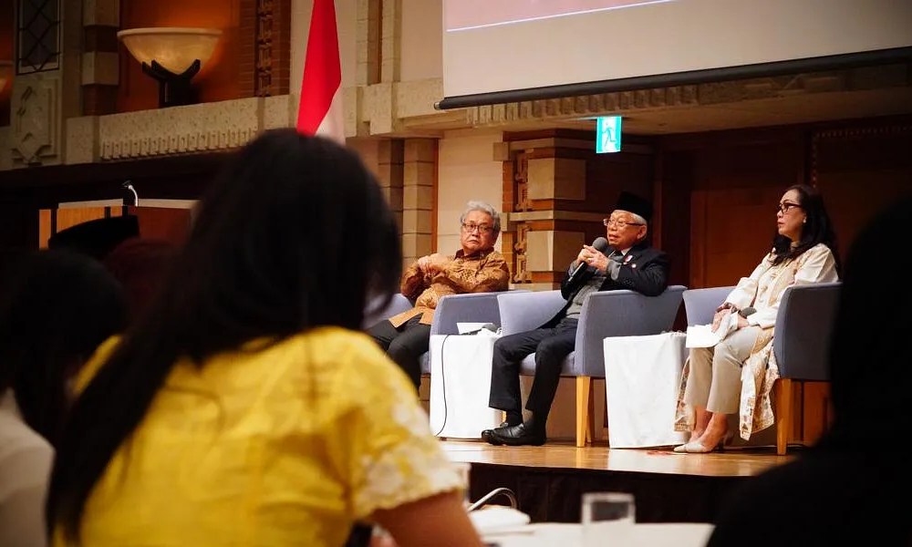“Ini perlu ada gagasan-gagasan, pikiran-pikiran yang cerdas saya kira. Nah, itu adanya pada anak-anak kita yang ada di luar negeri, yang sudah memperoleh standar-standar di Jepang, termasuk sebagai negara maju, dan mungkin dari negara lain,” tutur Wakil Presiden (Wapres) K.H. Ma’ruf Amin saat menghadiri acara Dialog Kebangsaan di Peacock Westroom, Hotel Imperial, Osaka, Jepang, Senin malam (06/03/2023).