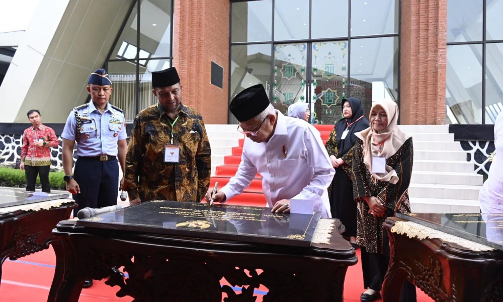 Didampingi Bupati Pasuruan Irsyad Yusuf, Sekretaris Daerah Pemprov Jatim Adhy Karyono, dan Direktur Keuangan dan Manajemen Resiko Jasa Marga Transjawa Tol Siti Sarah, Wapres melakukan Penandatanganan Prasasti 4 Masjid yang berada di Rest Area Pasuruan.