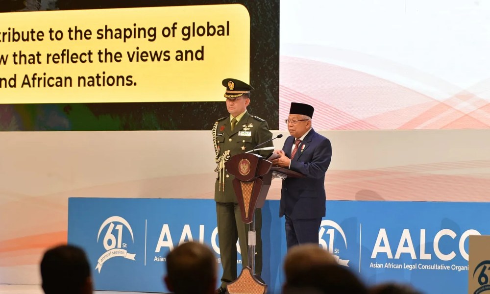 Saat memberikan keterangan pers, Wapres didampingi oleh Menteri Hukum dan Hak Asasi Manusia Yassona Laoly, Menteri Kehutanan dan Lingkungan Hidup Siti Nurbaya, Pj. Gubernur Bali Sang Made Mahendra Jaya, Sekretaris Jenderal AALCO Kamalinne Pinitpuvadol, dan Staf Khusus Wapres Robikin Emhas. (DMA/RJP, rls)