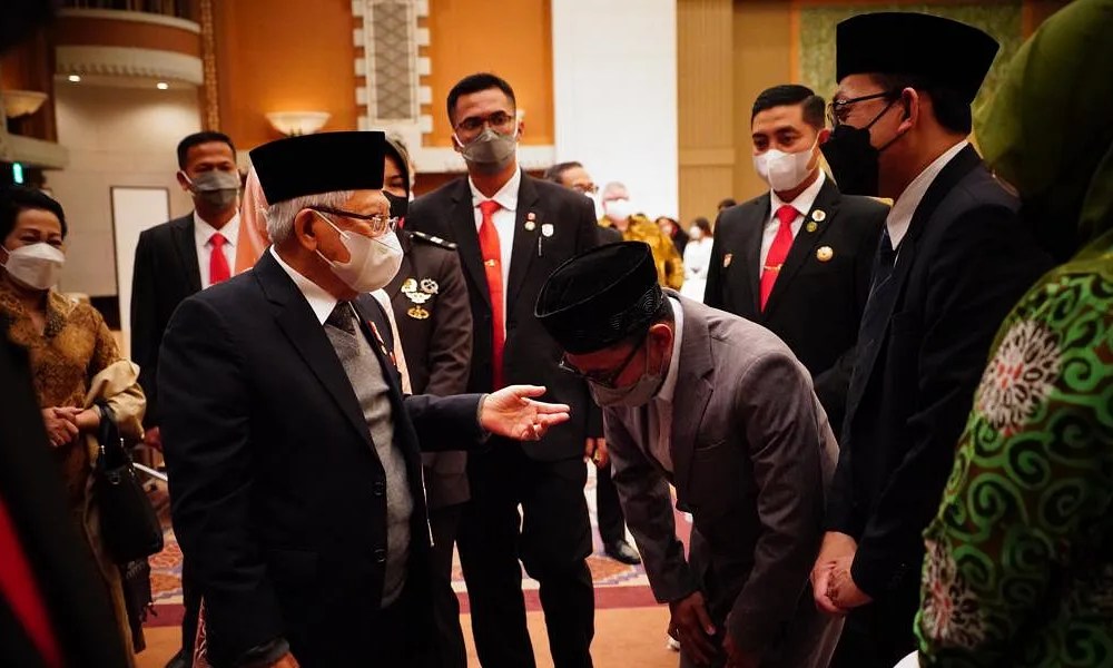Selain Ibu Hj. Wury Ma’ruf Amin, mendampingi Wapres dalam acar ini, Kepala Sekretariat WapresbAhmad Erani Yustika, Deputi Bidang Dukungan Kebijakan Ekonomi dan Peningkatan Daya Saing Guntur Iman Nefianto, Deputi Bidang Administrasi Sapto Harjono Wahjoe Sedjati, Direktur Jenderal Protokol dan Konsuler/Kepala Protokol Negara Andy Rachmianto, Staf Khusus Wapres Masykuri Abdillah, Masduki Baidlowi, dan Zumrotul Mukaffa,Tim Ahli Wakil Presiden Farhat Brachma, serta Plt. Direktur Eksekutif Komite Nasional Ekonomi dan Keuangan Syariah Taufik Hidayat (SK-BPMI, Setwapres)