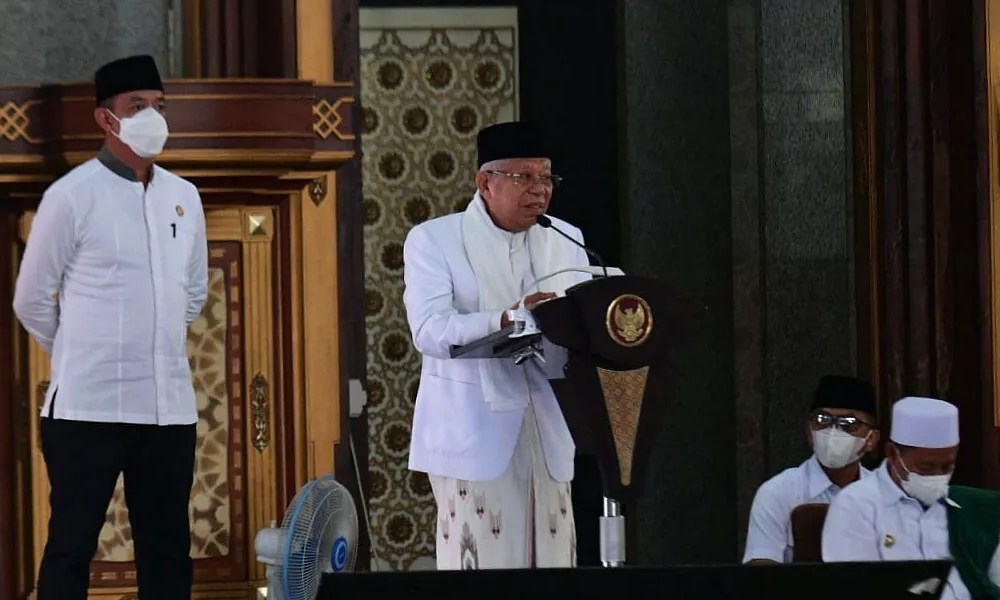 Turut mendampingi Wapres dalam keterangan pers ini, Wakil Gubernur Jabar UU Ruzhanul Ulum, Kepala Staf Angkatan Darat Jenderal TNI Dudung Abdurachman, dan Ketua MUI Cholil Nafis. (DAS/SK – BPMI, Setwapres)