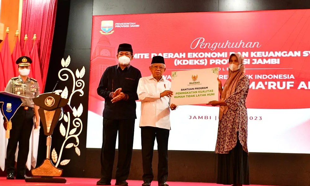 Jambi, wapsreri.go.id – Usai menyaksikan Prosesi Pengukuhan KDEKS Provinsi Jambi, Wakil Presiden (Wapres) K.H. Ma`ruf Amin sore ini, Kamis (4/5/2023), menyerahkan bantuan peningkatan kualitas rumah tidak layak huni (Rutilahu) di Kota Jambi.