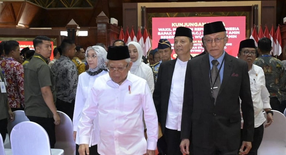 Mendampingi Wapres pada keterangan pers kali ini, Wali Nanggroe Aceh Teungku Malik Mahmud Al Haythar, Plt. Direktur Eksekutif Komite Nasional Ekonomi dan Keuangan Syariah Taufik Hidayat, serta Staf Khusus Wapres Masduki Baidlowi. (DAS/SK-BPMI, Setwapres)